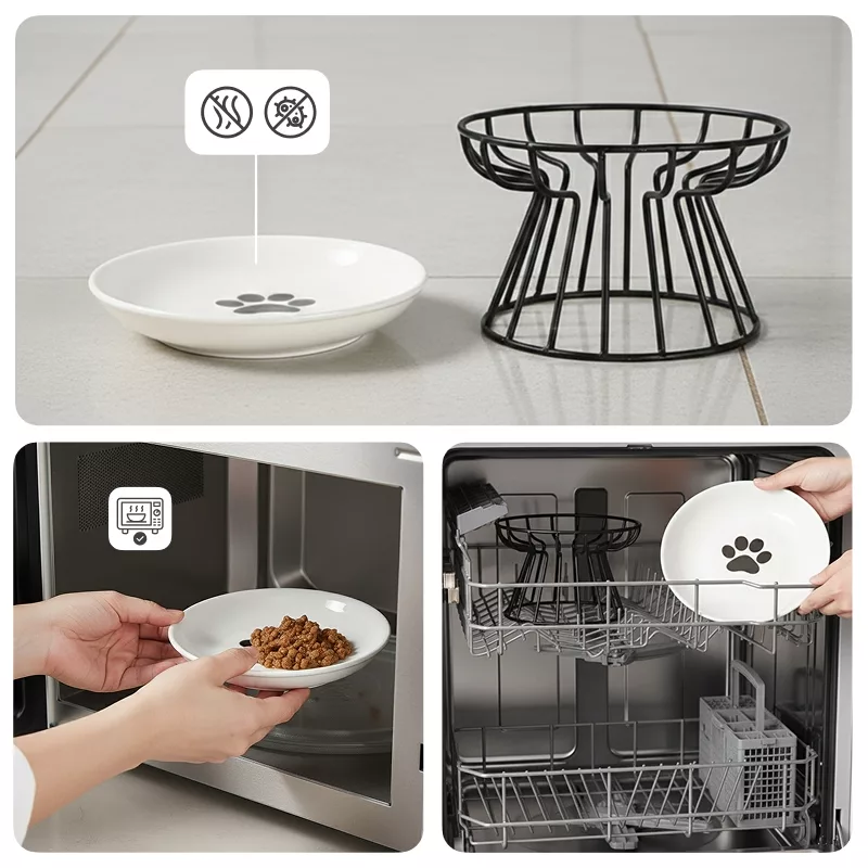 Flat plates give furry friends room for every bite. Sensitive whiskers never get squashed or irritated during meals.