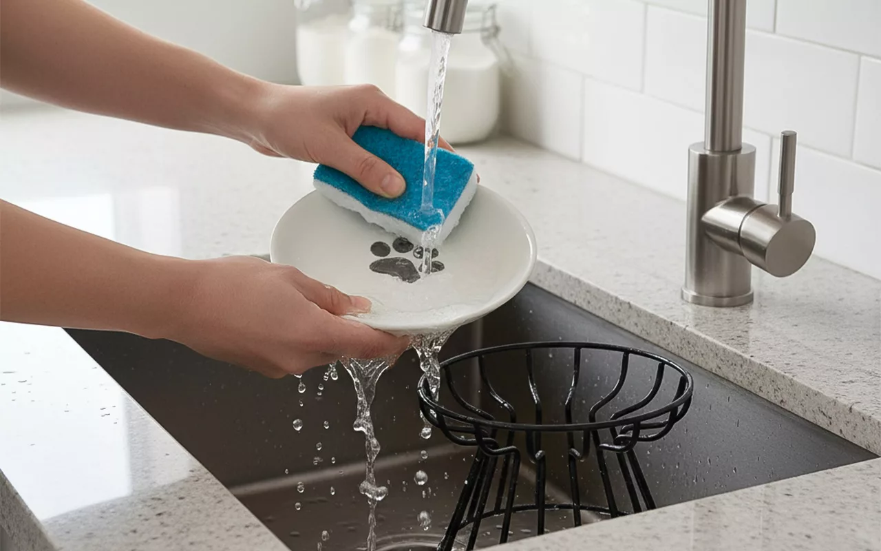 Our tabby loves her new dish! No more chasing food across the floor. Cleanup is so quick with the smooth surface.