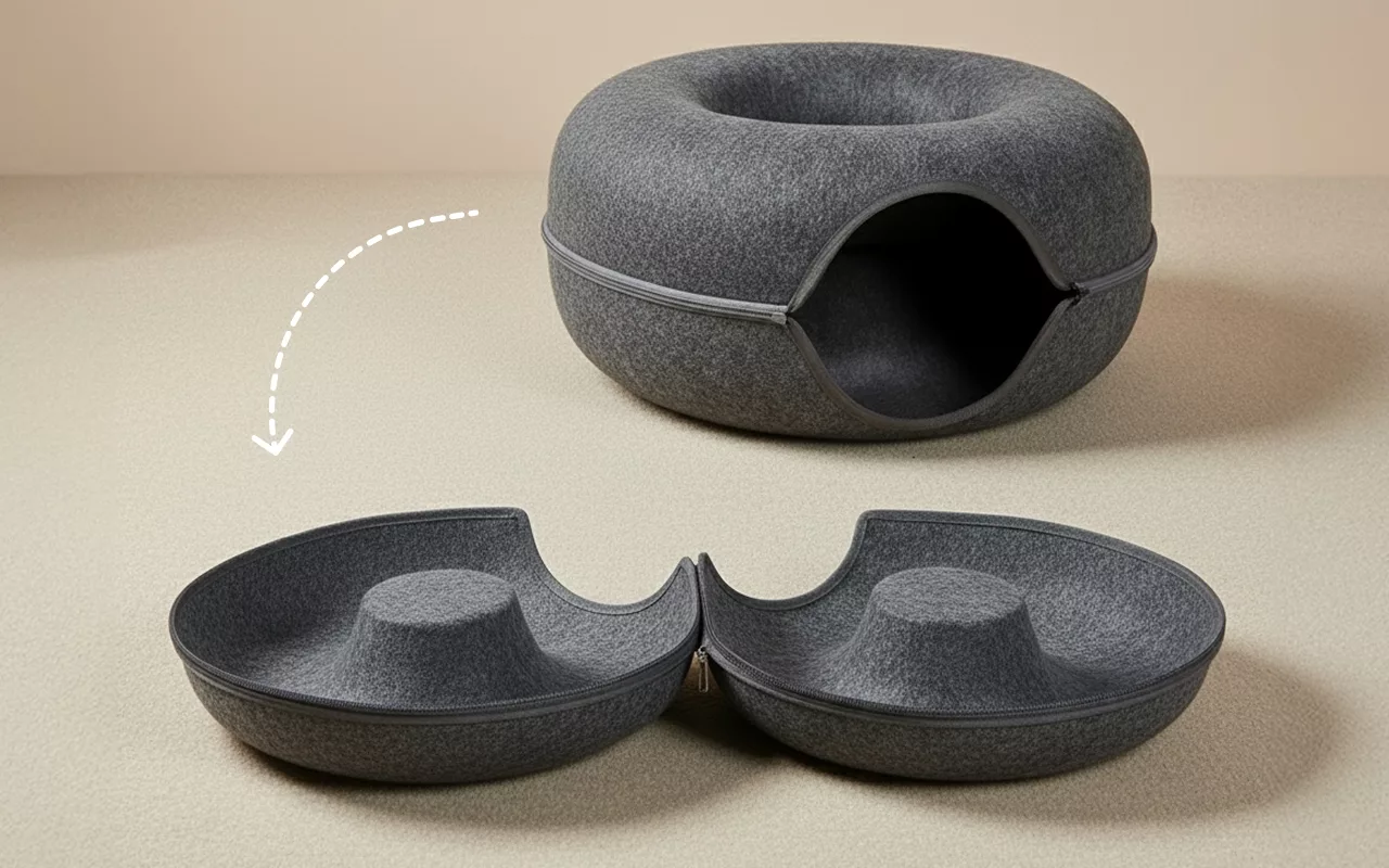 This clever design keeps furry friends entertained. Strong felt construction protects against sharp claws and messy fur. Quick zip separation makes cleaning and setup simple each time.