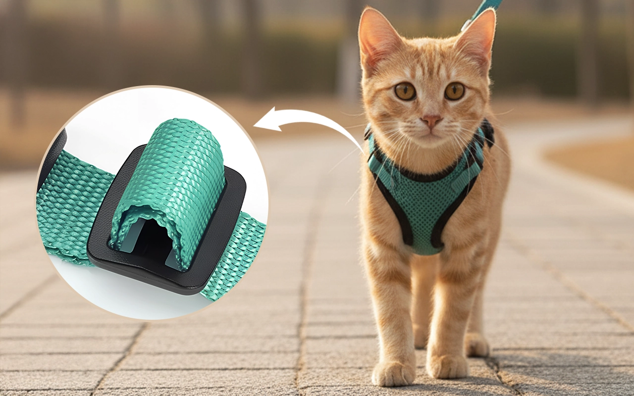 Special design keeps pets from slipping out during walks. Confidently explore parks or gardens without worrying about sudden escapes.