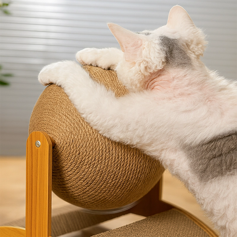 Curved bridge and spinning ball give endless excitement. Cats explore, scratch, and relax with every use.