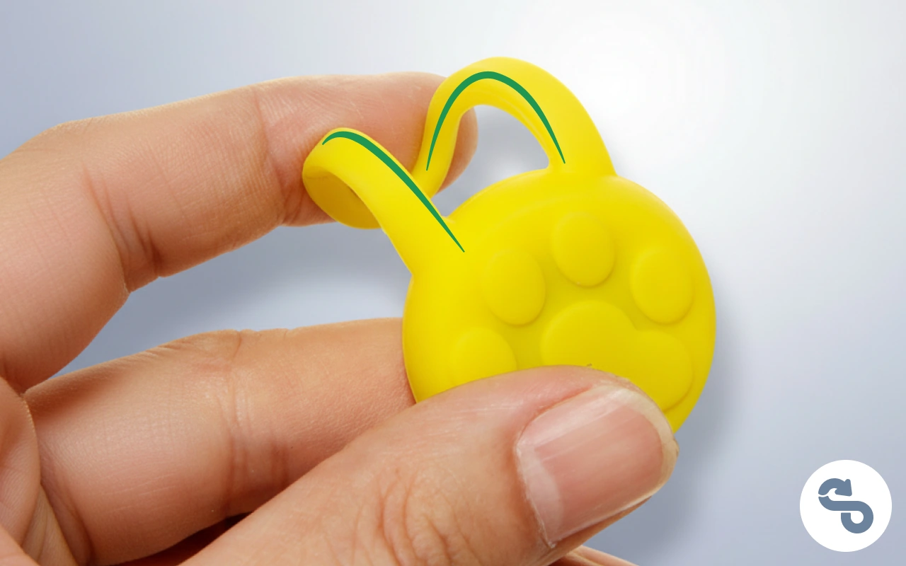 Flexible loop stretches for quick fitting on collars or harnesses. You can move it between pets or accessories as needed.