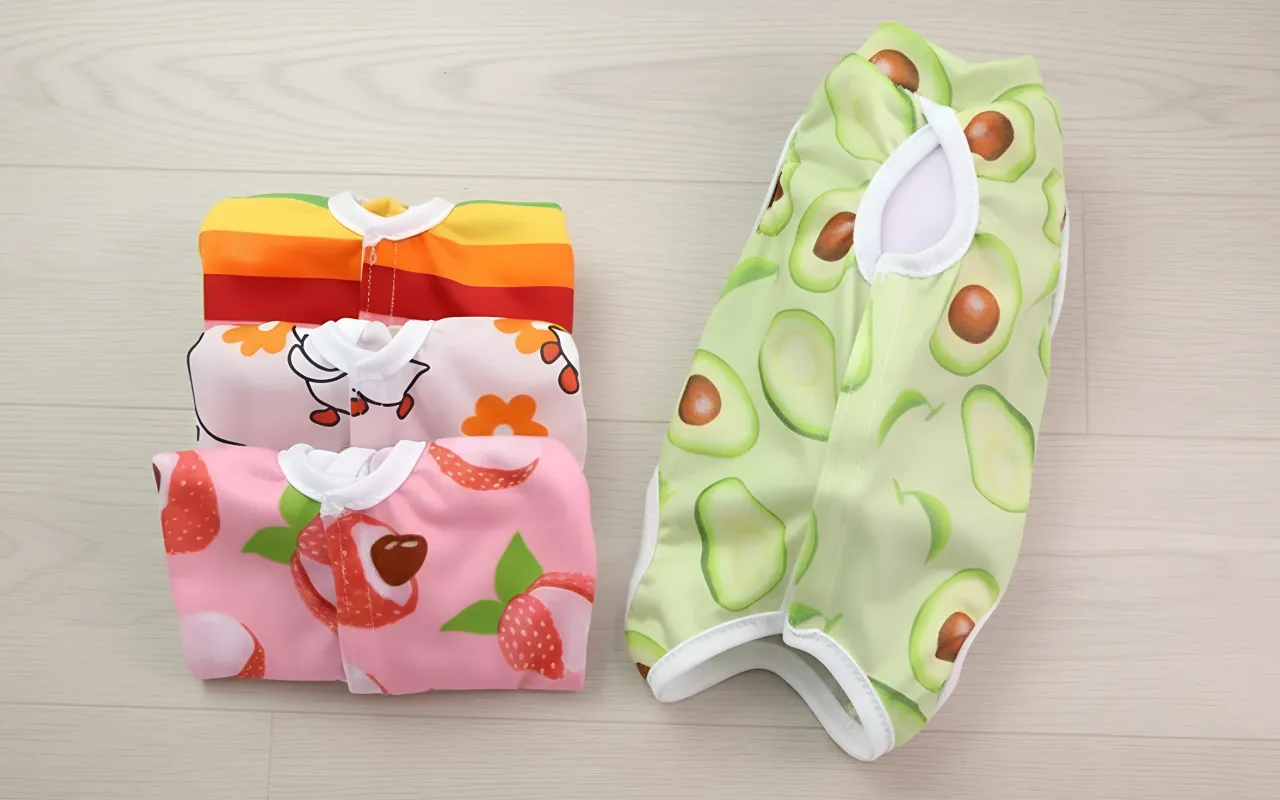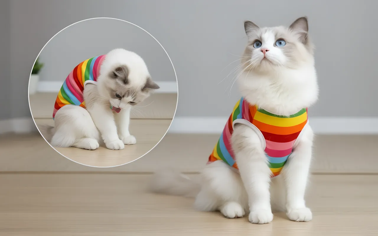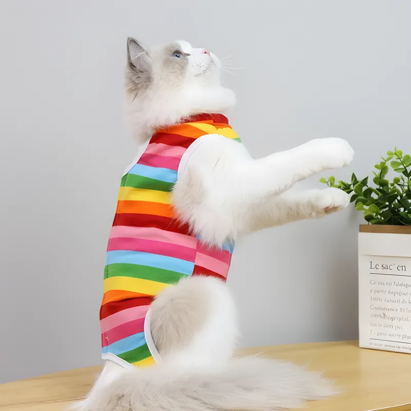 Our cat recovery suit features playful prints and bright colours. Turn healing time into a stylish, cheerful experience.
