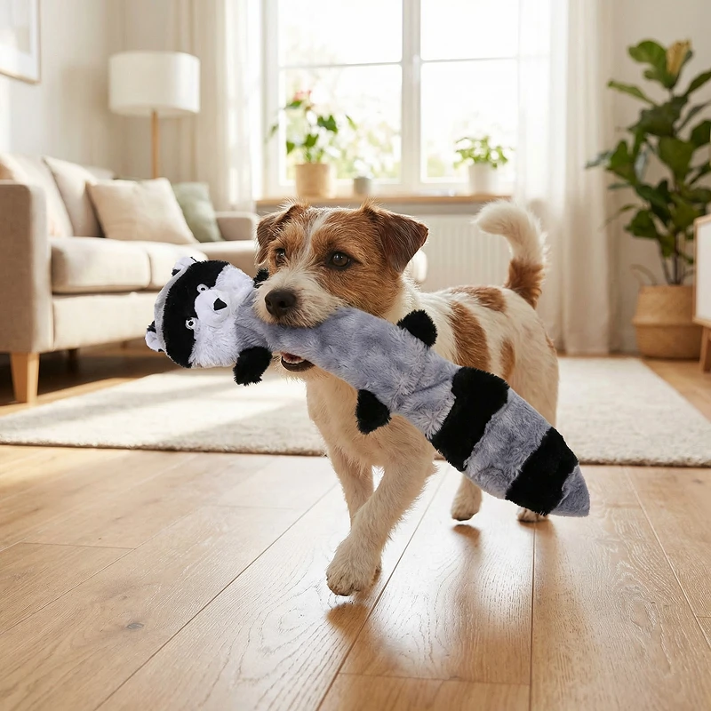 Fleece animal is the best rainy-day playmate. Keeps my dog jumping and running even when we can’t go outside.