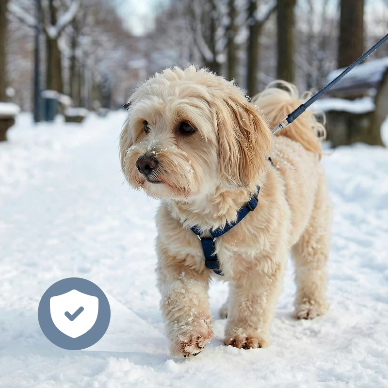 Creates a shield against cold, heat, and rough pavements. Enjoy walks any time, knowing paws and noses are protected.