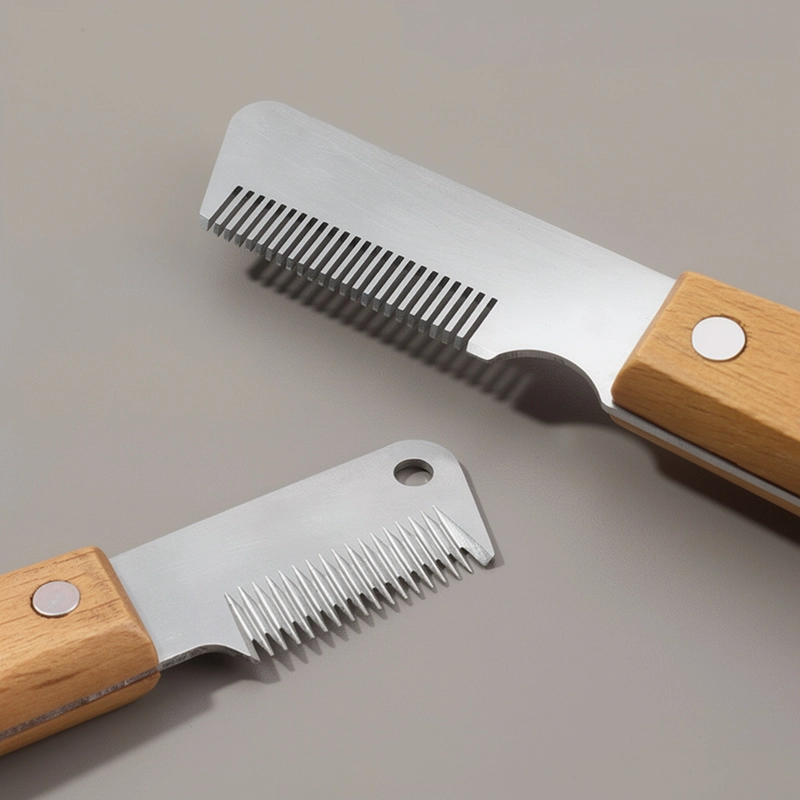 Really happy with this grooming knife. My golden retriever actually sits still and his coat is silky soft afterward. The wood handle feels sturdy and it doesn’t slip when my hand gets wet.