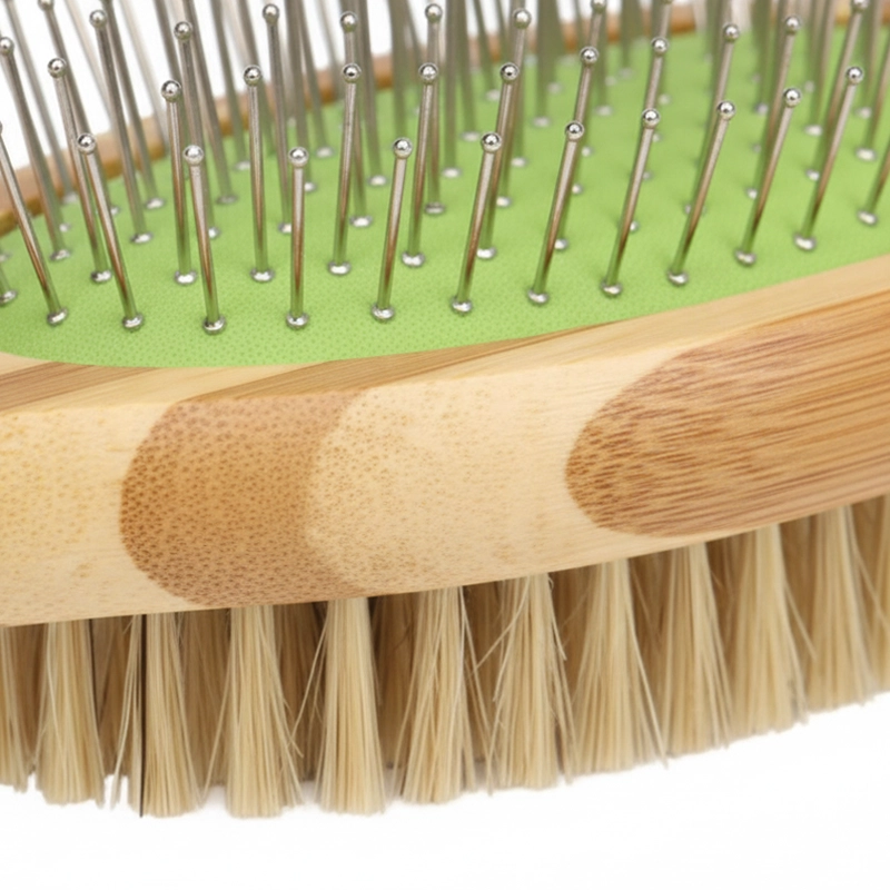 Switch easily between bristle and pin sides for full care. Each side targets tangles or smooths fur for a polished finish.