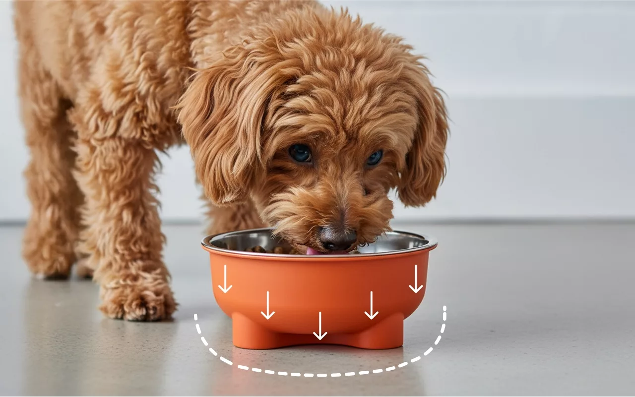 No spills, even with my clumsy beagle. Dishes pop out for a wash, and he can eat comfortably without slipping everywhere.