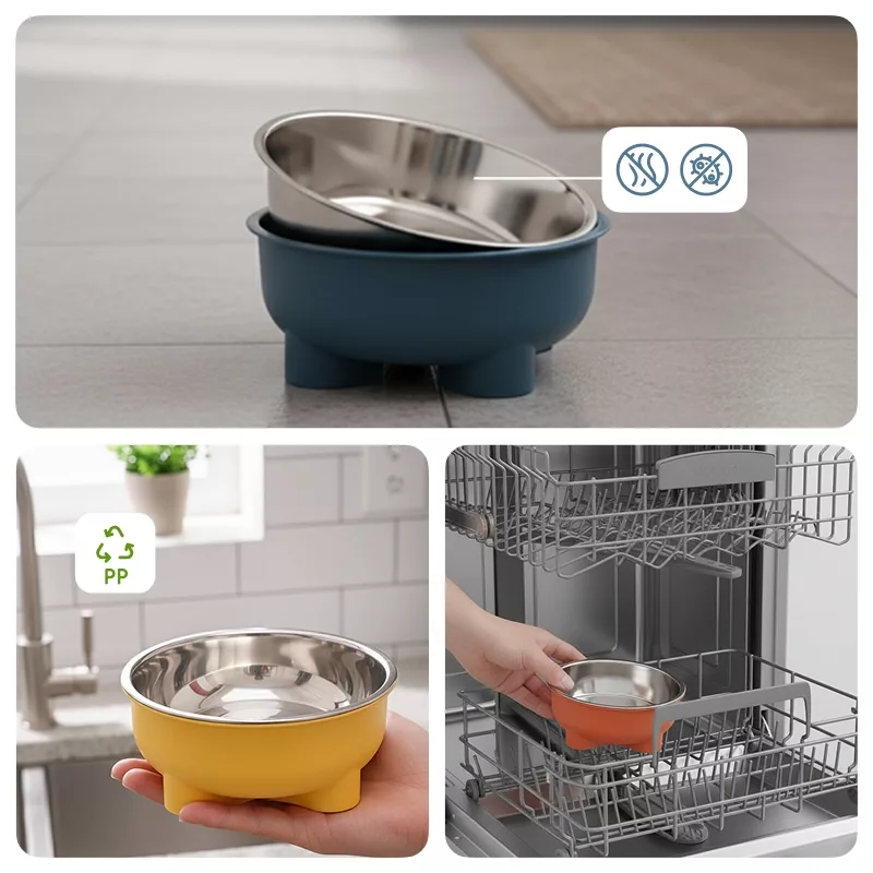 Four solid legs stop sliding, so nothing tips or wobbles. Pets eat peacefully in comfort without mess underfoot.