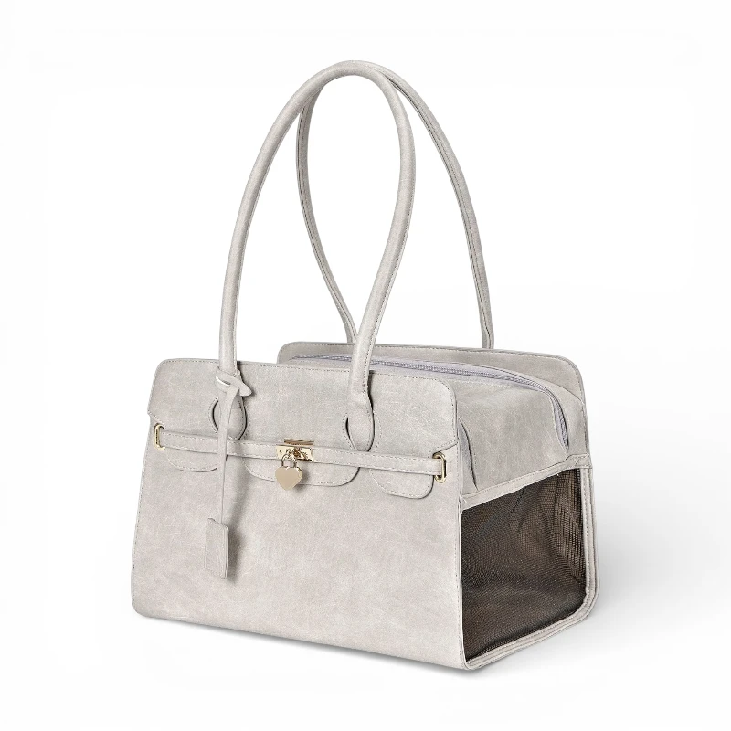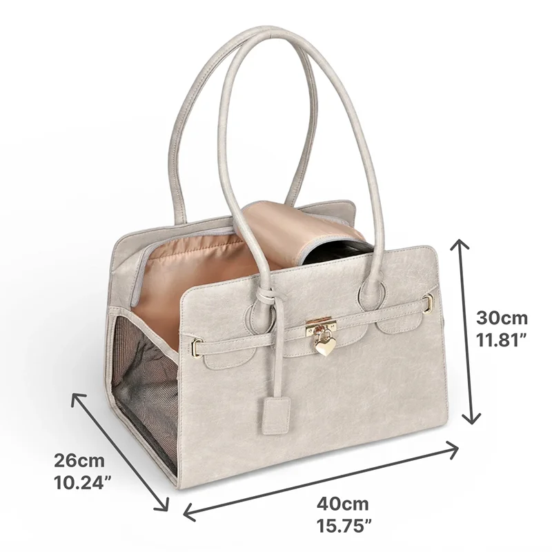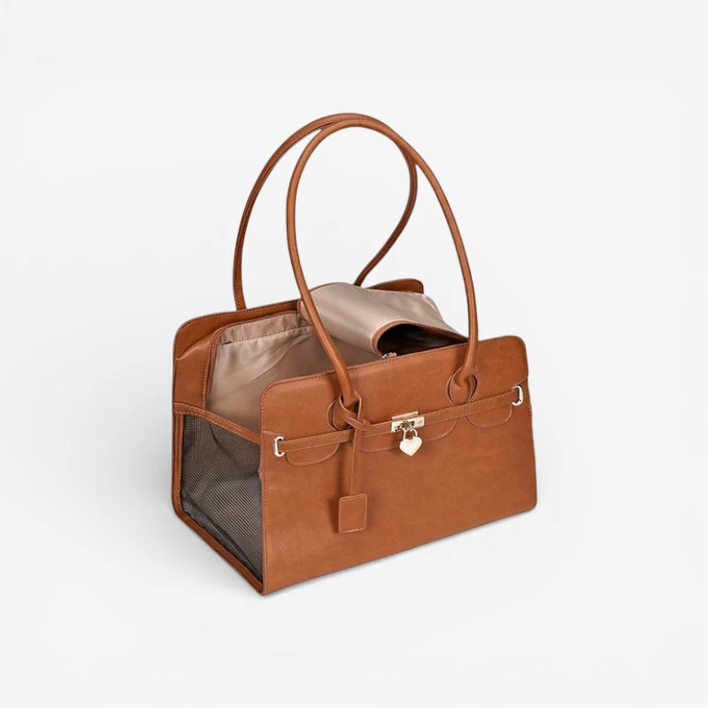 Leather Dog Carrier Handbag Elegant Pet Travel Tote