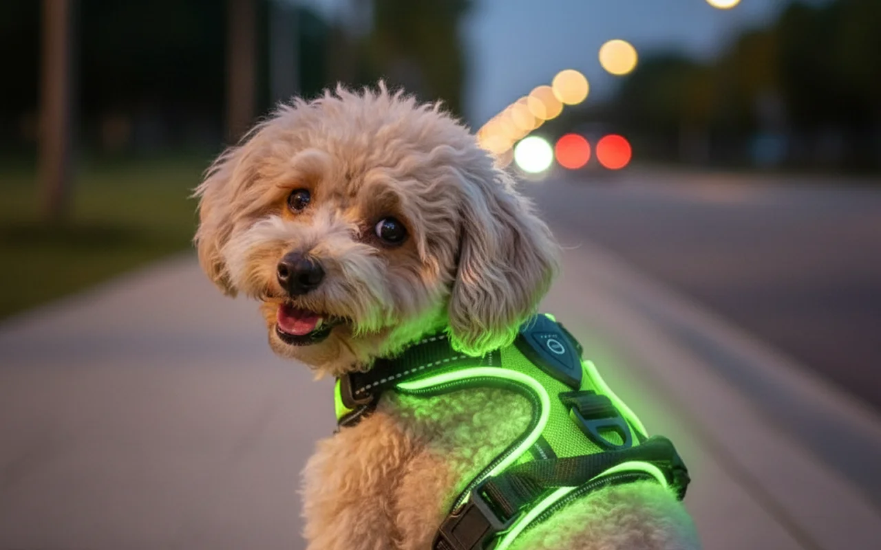 I love how visible Spike is now. The bright lights and soft straps keep him happy during evening runs. It feels really safe too.