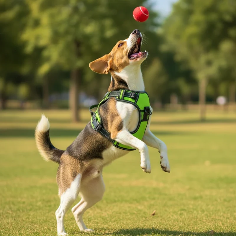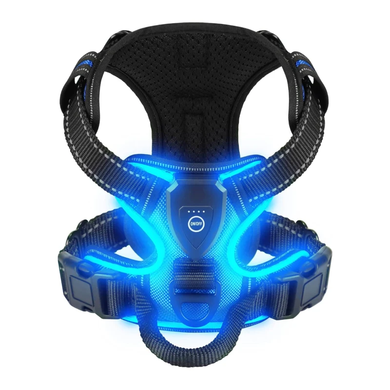Our walks are so much easier since using this harness. The lights help cars spot us right away, and my dog stays cool and comfy.