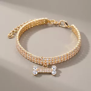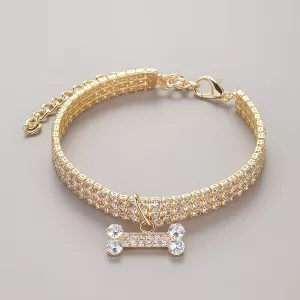 Lovely Dog Rhinestone Necklace Collar with Bone Pendant