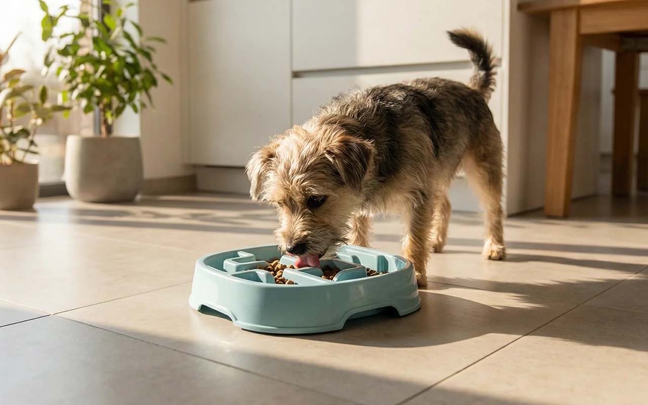 I love how this bowl stops my pup from gobbling his kibble. The anti-slip part is awesome because it stays put while he’s eating.