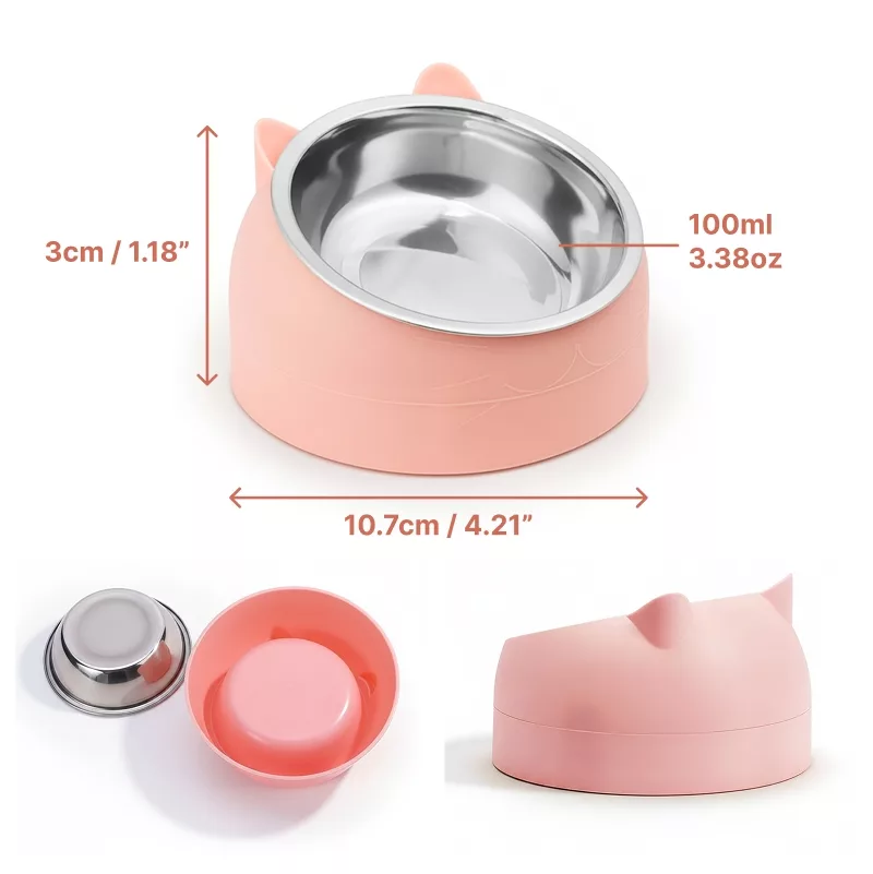 The tilted bowl seems to make a big difference for my older cat. She eats slower and seems more relaxed. Super simple to take apart and wash.