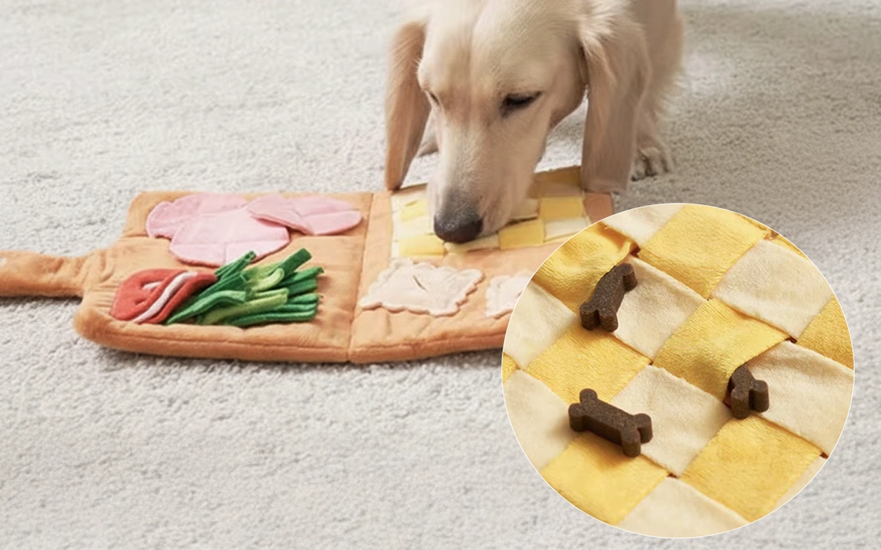 The plush mat is just what my pup needed for rainy days inside. He enjoys sniffing around it and never loses interest, even after weeks.