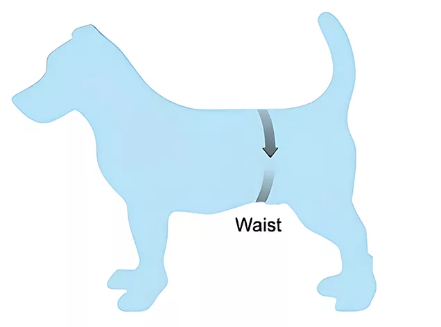 - 1. Wrap the measuring tape around the narrowest part of your dog’s body in front of the back legs.