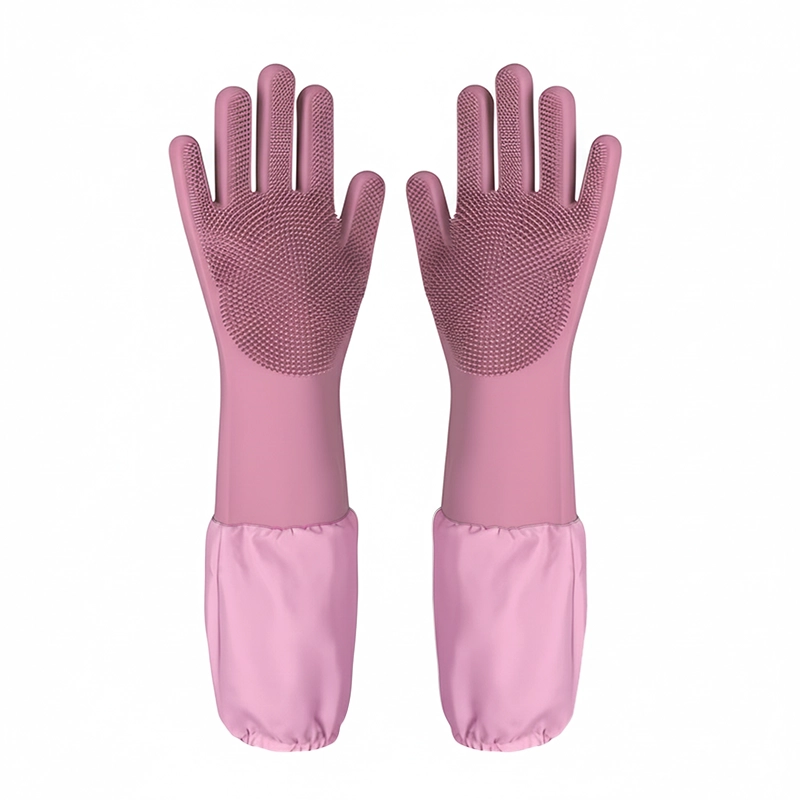 Strong silicone keeps skin dry and shields arms from water. No harsh chemicals touch your body during every wash.