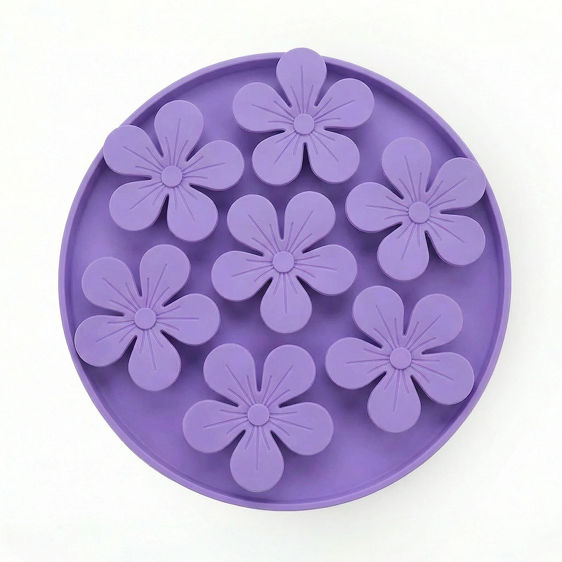 Our pup used to tip his regular dish every meal but this mat sticks like glue! He spends more time munching which means less gulping and upset belly. I love how bright and fun it looks.