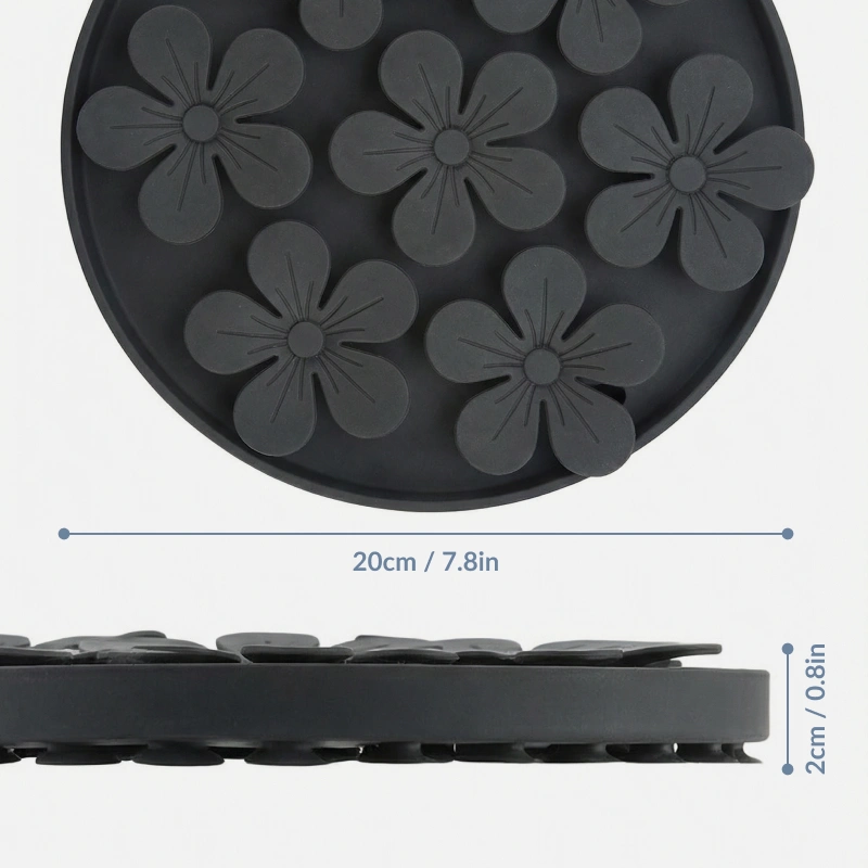 Suction cup keeps the mat firmly in place always. No more food sliding or bowls tipping over by accident.