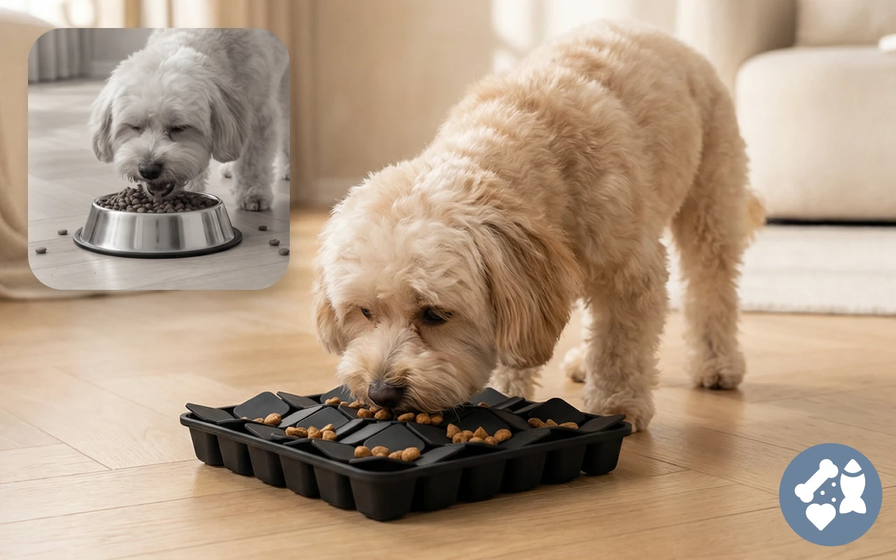 Sniffing out kibble makes eating a playful daily challenge. Boredom drops fast, as each meal becomes a rewarding activity.