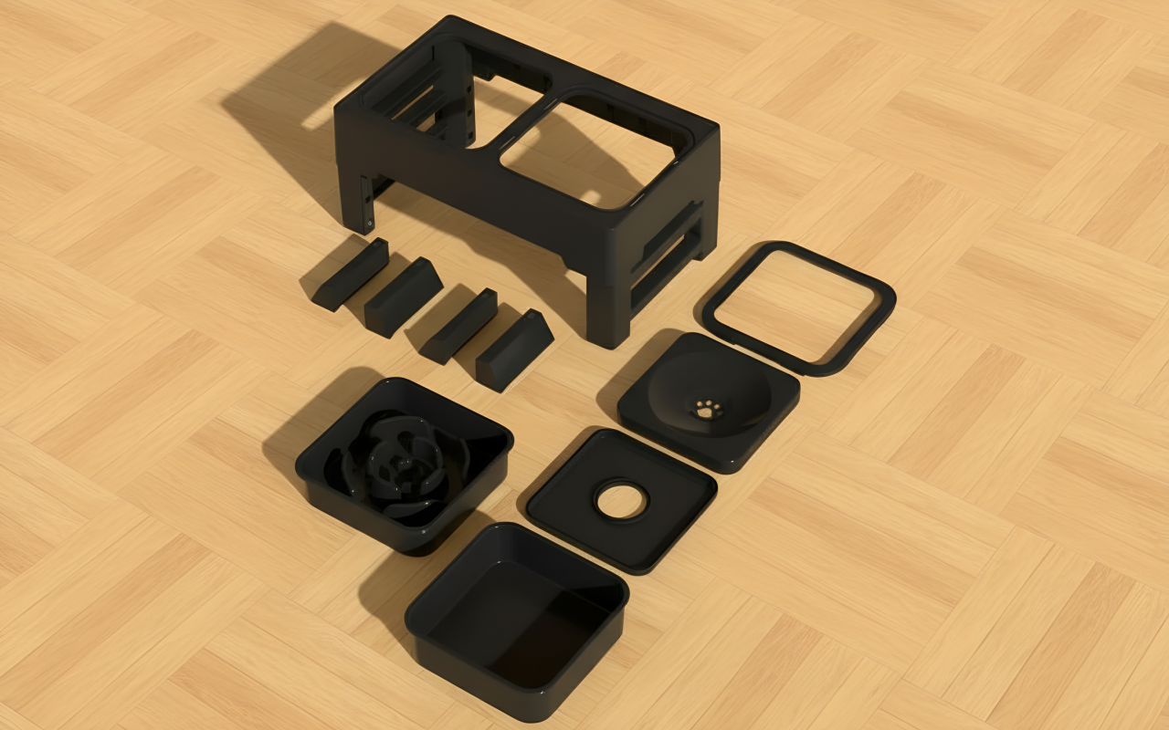 My two little furballs have such a tidy spot for breakfast now. No spilled water, and taking the bowls apart is easy.