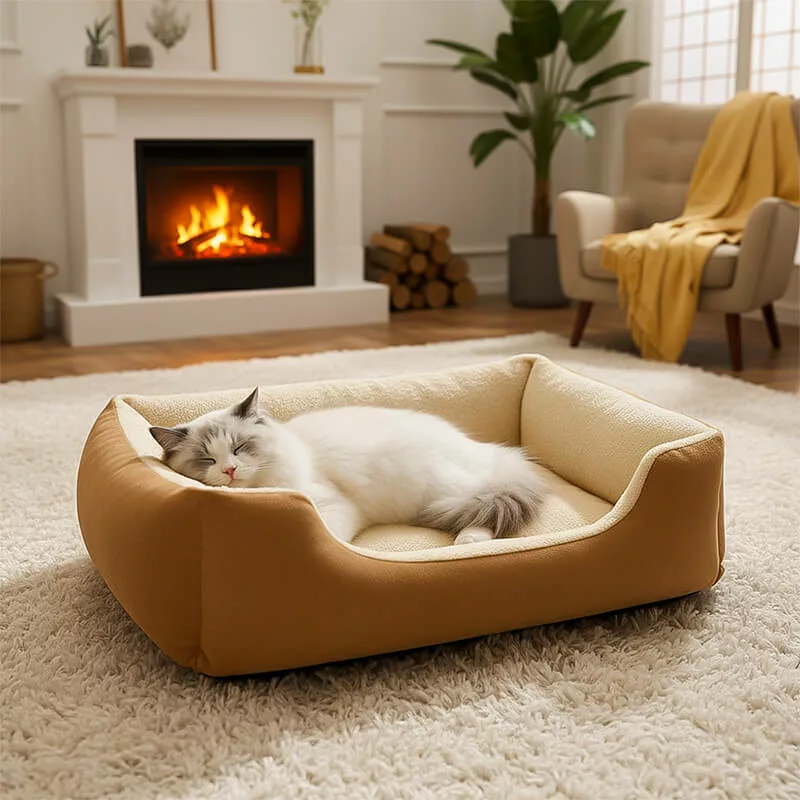 My cat loves curling up in her new bed. The raised edges help her feel safe, and cleaning it is easy for me. It looks cute in our living room too!