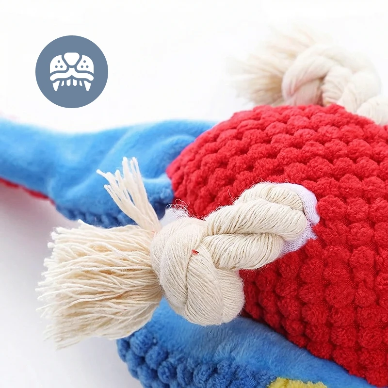 Knotted feet encourage healthy chewing and massage the gums gently. Soft plush protects teeth while providing daily fun play.