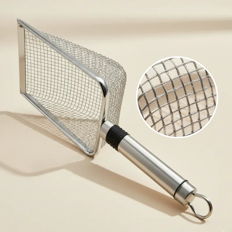 I was surprised by how sturdy the handle feels, even when I use it every day. The mesh lets nothing fall through unless it should!