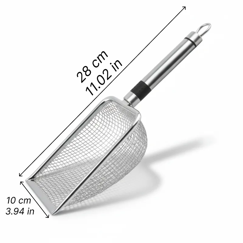 Makes my daily kitty chores a breeze. The mesh is just the right size for sifting out clumps but not wasting clean litter.