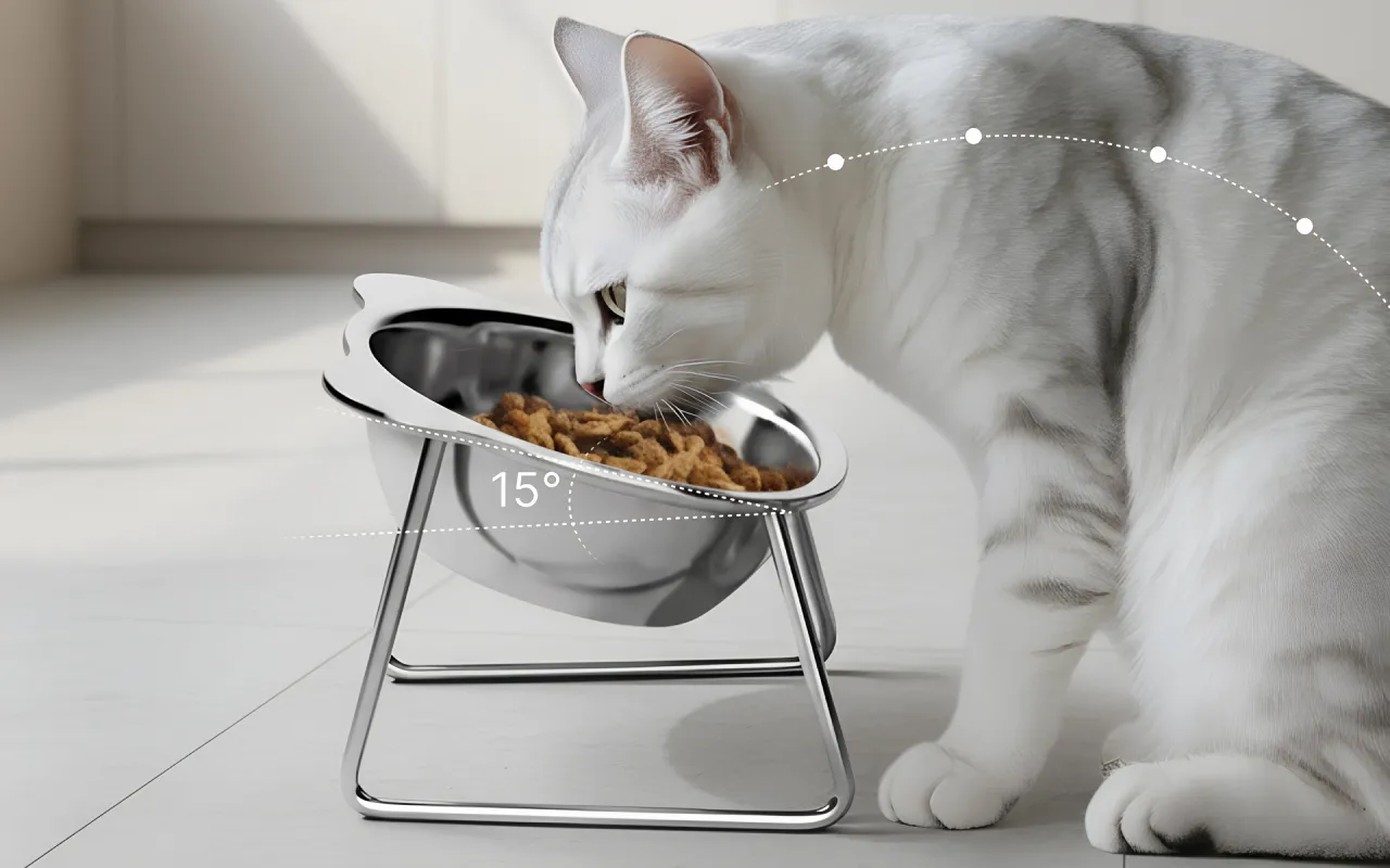 My cat eats much better now. The tilted bowl makes mealtime comfy for her neck and keeps food from going everywhere. Cleanup is super easy.
