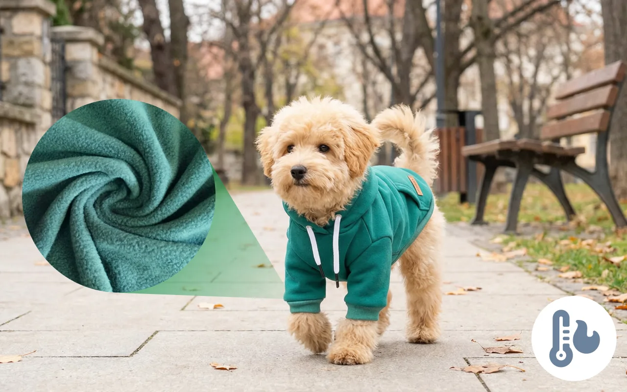 My dog loves this cozy hoodie! Keeps him warm on chilly mornings. The fleece inside is super soft and he runs around freely without any trouble.