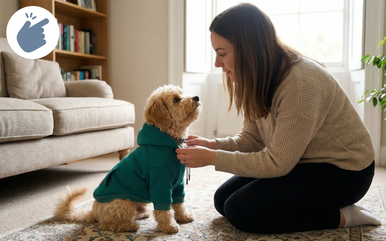 My dog actually likes putting this little hoodie on. I don’t have to chase her around the house to get ready for walks!