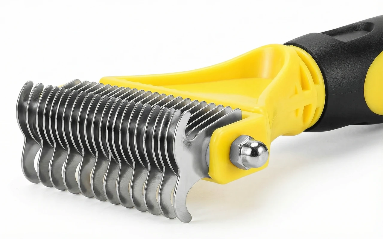 Bought this comb for my dog. It slips through his thick fur, breaks up old mats, and leaves him soft without any yel or fuss.