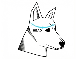 - 1. Wrap the measuring tape around the widest part of the dog's head, just in front of the ears.
