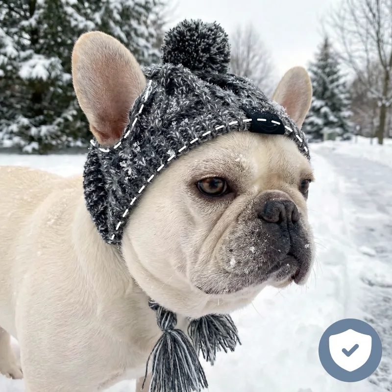 This beanie is adorable! My dog used to shiver but now she’s comfortable and happy to stay outside longer. Stays put during all her running.