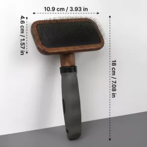I like that it’s made of real wood instead of plastic. The bristles are gentle, so my spaniel isn’t scared to get brushed now. Big fan.